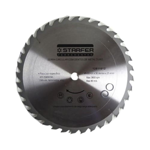 O Disco de Serra Circular é ideal para ser utilizado juntamente com serras circulares nos trabalhos de corte em madeiras, chapas laminadas, aglomerados, compensados, MDF, entre outros. Indicado para cortar madeiras finas que necessitem de melhor acabamento e precisão. CARACTERÍSTICAS TÉCNICAS:Material: Aço carbono e metal duroMedidas: 350mm - 14Número de dentes wídia : 48Diâmetro do furo: 25,4mmLimite máximo: 4400 rpm - 80 m/sEspessura do disco: 2,5mmEspessura de corte: 3,8 mmMarca: StarferRef.: 12810822