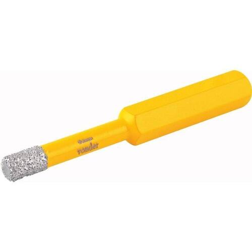 Possui corpo reforçado em aço, ponta com revestimento diamantado e haste sextavada