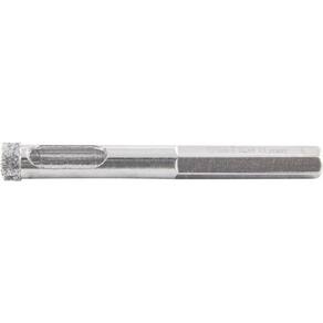 Possui corpo reforçado em aço, aresta de corte com revestimento diamantado e haste sextavada