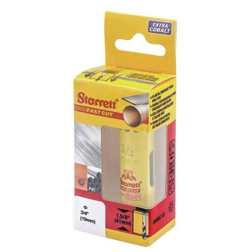 As serras copo fast cut proporcionam cortes mais rápidos e suaves em uma grande variedade de materiais, graças ao novo e exclusivo perfil dos dentes da serra Com extra cobalto as serras copo Fast Cut proporcionam melhor resistência ao calor e ao desgaste São adequadas para o corte de materiais metálicos e de aço inoxidável, como chapas, perfis e outros Informações Técnicas: Marca: Starrett Modelo: FCH0034-G Contém: 1 unidade Diametro: 3/4 19mm Profundidade de corte de: 41mm 1.5/8 Garantia contra defeitos de fabricação Ean: 0049659004823