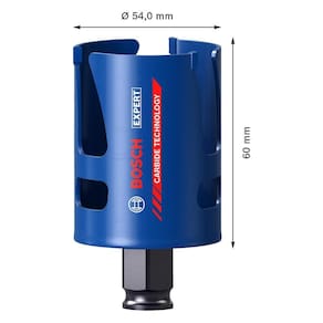 A serra copo Bosch EXPERT Construction Material corta rapidamente vários tipos de materiais como madeira, tijolos, plásticos e drywall. Conta com ranhuras em forma de gota para remover aparas de maneira eficaz para uma perfuração rápida e contínua. Os dentes robustos com a Carbide Technology da Bosch oferecem à serra copo um ritmo de perfuração excepcionalmente rápido e mais durável. A serra copo Bosch EXPERT Construction Material inclui o adaptador do sistema Power Change exclusivo da Bosch com a troca mais rápida do mercado. Permite a troca da serra copo e brocas guia com um clique. É adequado para utilizar com todas as furadeiras e parafusadeiras a cabo ou bateria. Garantia 6 meses Bosch.- Dura até 50 vezes mais que a serra copo de aço Carbono Tradicional da Bosch- Durabilidade excepcional com a tecnologia Carbide da Bosch.- Rápida remoção das aparas através da abertura lateral em forma de gota- Ideal para cortar madeira, tijolos, plásticos e drywallItens inclusos: 1 Serra copo EXPERT Construction Material 54 mm, 2 1/8Especificações técnicas:- Diâmetro: 54mm - Polegadas do diâmetro: 2 1/4 - Comprimento útil: 60mm
