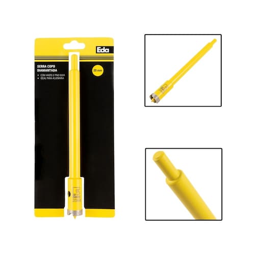 A Serra Copo Diamantada de 20mm com haste de 170mm e pino guia é perfeita para perfurações precisas em materiais como alvenaria, porcelanato e mármore. Com altura externa de 47mm e borda diamantada de 7mm, essa serra oferece durabilidade e segurança, garantindo cortes limpos e profissionais sem trincas ou quebras. O encaixe da haste de 8,8mm permite fácil fixação em mandris, e a espessura de 3,5mm do copo garante estabilidade durante o uso. Aproveite essa solução robusta e de alto desempenho, projetada para resultados de qualidade em cada aplicação!