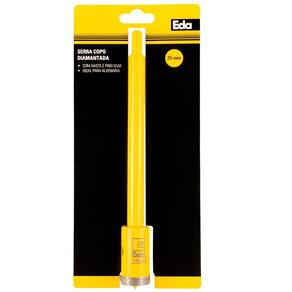 Serra Copo Diamantada 25mm com Haste Pino Guia Eda Serra copo diamantada com haste e pino guia, indicada para cortar telhas, tijolos, cerâmicas, azulejos, concreto, parede, pedras, refratários, granitos entre outros. - Marca: Eda - Referência: 0TD - Diâmetro: 25mm - Serra Copo com haste e pino guia - Ideal para alvenaria - Comprimento da haste: 170mm - Diâmetro do encaixe da haste no mandril: 8,8mm - Altura externa do copo: 47mm - Altura da borda diamantada: 7mm - Espessura do copo: 3,5 mm - Facilita a realização de furos de grandes diâmetros em tempo reduzido - Indicada para cortar telhas, tijolos, cerâmicas, azulejos, concreto, parede, pedras, refratários, granitos entre outros. - Quando utilizada com o pino guia, deve-se fazer um furo com broca de vídea antes. - Nunca utilizar o equipamento na função IMPACTO/MARTELETE - Haste e corpo em aço carbono - Camada de corte: Pasta abrasiva com diamante - Utilize com refrigeração - Peso bruto: 294 gramas - : 90 dias