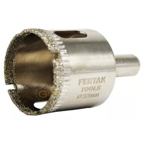 Broca diamantada de corte circular 32mm serra copo broca diamantada revestida fura um círculo completo de vidros, mármore, granito, espelhos, garrafas, pisos, azulejos e cerâmicas marcação do diâmetro nas brocas aviso: a broca diamantada foi desenvolvida para ser utilizado com agua. Nunca deve ser utilizado a seco para não estragar o diamante de corte modo de usar: comece o buraco com a broca inclinada nunca comece o furo com a broca reta para não ficar pulando/derrapando , segure firme até começar a cortar e, aos poucos deixe a broca reta para furar o círculo completo pode ser utilizado com uma furadeira elétrica padrão sempre use óculos e luvas de proteção