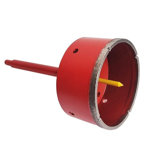 Serra Copo Diamantada com Haste 110mm e Guia HTOM Serra Copo Diamantada com Haste, indicada para cortar telhas, tijolos, cerâmicas, azulejos, concreto, parede, pedras, refratários, granitos entre outros. - Marca: HTOM - Referência: 39388 - Diâmetro da serra copo: 110mm - Altura serra copo: 56 mm - Altura da camada de diamante: 8mm - Diâmetro da haste: 15 mm - Diâmetro do encaixe da haste: 10 mm - Comprimento total da haste: 175 mm - Facilita a realização de furos de grandes diâmetros em tempo reduzido - Indicada para cortar telhas, tijolos, cerâmicas, azulejos, concreto, parede, pedras, refratários, granitos entre outros. - Quando utilizada com o pino guia, deve-se fazer um furo com broca de vídea antes. - Nunca utilizar o equipamento na função IMPACTO/MARTELETE - Haste e corpo em aço carbono - Camada de corte: Pasta abrasiva com diamante - Utilize com refrigeração - : 90 dias contra defeito de fabricação