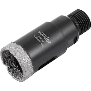 Ref. Fornecedor: 3617200032Marca: VonderConteúdo Embalagem:1 Serra copoDestaques e diferenciais:Corte a seco. Permite a realização de furos com grandes diâmetros em tempo reduzidoAplicações e dicas de uso:Serra copo diamantada para uso em telhas, tijolos, cerâmicas, azulejos, granito, mármore. Indicada para uso em esmerilhadeira com rosca interna M14 e rosca externa 1/2 BSP para máquinas estacionárias em marmorariaCaracterísticas Técnicas:Diâmetro da serra copo: 32 mm Altura útil aproximada da serra copo: 47 mm Comprimento total: 80,0 Diâmetro e tipo da rosca: M14 Rotação máxima rpm : 11000 /min Ean: 7893946647759