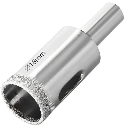 Diâmetro: 18mm Material: Liga metálica com ponta diamantada. Refrigeração: Sistema interno de resfriamento para maior vida útil. Compatibilidade: Uso com furadeiras e esmerilhadeiras. Aplicações: Cortes em porcelanato, cerâmica, granito, mármore e outros materiais duros.
