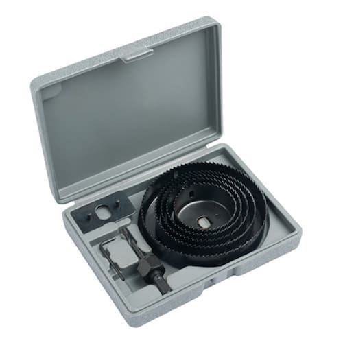 Serra copo para madeira 7 peças - eda Jogo de serra copo com 8 peças eda acompanha 5 lâminas e 3 acessórios. Kit indicado para uso em madeira e acrílico. - marca: eda - modelo: 9ka - kit com 8 peças - recomendado para uso em madeira e acrílico - profundidade das serras: 1" - encaixe para furadeiras com mandril de 3/8" ou maior - fabricado em aço carbono - peso bruto: 825 gramas itens inclusos - 1 broca piloto com suporte - 1 encaixe - 1 chave allen - 5 serra copos: 2 1/2" 64mm , 3" 76mm , 3 1/2" 89mm , 4" 102mm , 5" 127mm - 1 maleta Ean: 7895315013349