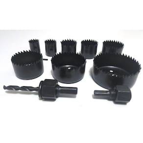 Com esse kit de serras copo em aço carbono você poderá fazer cortes limpos e suaves em madeiras, plásticos, gesso e metais leves. perfeito, completo para seu trabalho no dia a dia. Já inclui broca guia e adaptador com hastes de 1/4 e 3/8 e também trava de encaixe das serras. Ótima opção de custo-benefício com utilidade profissional e hobby. O kit vem acondicionado em uma maleta organizadora de pvc num total de 11 peças. São 8 copos nos tamanhos, 19mm, 22mm, 29mm, 32mm, 38mm, 44mm, 51mm, 64mm.