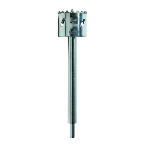 Serra Copo Diamantada com HasteCaracterísitcas Diamante industrial - alta performance. Haste de 150mm com encaixe hexagonal, acompanha o produto na versão com haste. Pino guia para furos que exigem mais precisão. Encaixe hexagonal no mandril permite retirar a serra após o uso . Possibilidade de utilização dos suportes de linha da Starrett® Mais rápida e com longa vida útil Fácil retirada do cavaco através dos canais Menor esforço do operador, economiza mais bateria Profundidade de corte de 38mm 1.1/2” Aplicações sem refrigeração Alvenaria - blocos cerâmicos, tijolos, telhas etc.Aplicações com refrigeração Porcelanatos - pisos e revestimentos Pedras - granitos, mármores, ardósia e materiais similaresÁreas de Utilização Instalações de ar condicionado Instalações hidráulicas tubulações e torneiras Instalações elétricas fios, cabos, telefonia, cerca elétrica etc. Podem ser utilizadas em todos os tipos de máquinas, hobby, profissional e industrial com mandril tradicional para uso em máquinas com encaixe SDS, temos disponível a haste SDS avulsa . Hastes Avulsas Disponíveis Encaixe hexagonal 150mm com pino guia Encaixe SDS 200mm com pino guia *Atenção: A função martelete deve ser desligada durante o uso. Ean: 0049659017625