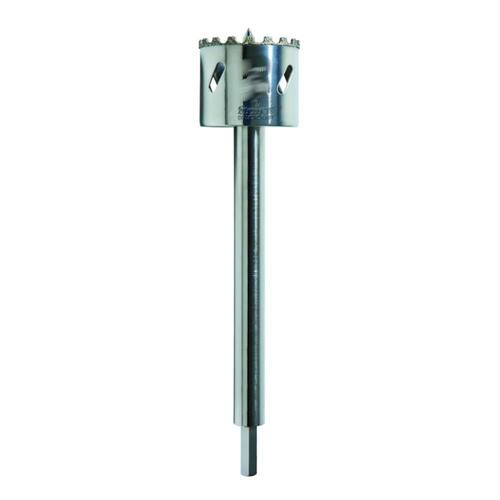 Serra Copo Diamantada com HasteCaracterísitcas Diamante industrial - alta performance. Haste de 150mm com encaixe hexagonal, acompanha o produto na versão com haste. Pino guia para furos que exigem mais precisão. Encaixe hexagonal no mandril permite retirar a serra após o uso . Possibilidade de utilização dos suportes de linha da Starrett® Mais rápida e com longa vida útil Fácil retirada do cavaco através dos canais Menor esforço do operador, economiza mais bateria Profundidade de corte de 38mm 1.1/2” Aplicações sem refrigeração Alvenaria - blocos cerâmicos, tijolos, telhas etc.Aplicações com refrigeração Porcelanatos - pisos e revestimentos Pedras - granitos, mármores, ardósia e materiais similaresÁreas de Utilização Instalações de ar condicionado Instalações hidráulicas tubulações e torneiras Instalações elétricas fios, cabos, telefonia, cerca elétrica etc. Podem ser utilizadas em todos os tipos de máquinas, hobby, profissional e industrial com mandril tradicional para uso em máquinas com encaixe SDS, temos disponível a haste SDS avulsa . Hastes Avulsas Disponíveis Encaixe hexagonal 150mm com pino guia Encaixe SDS 200mm com pino guia *Atenção: A função martelete deve ser desligada durante o uso. Marca: Não Informado