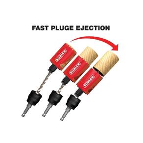 - Ejeção rápida de plugue - Equipado com um recurso de ejeção de bujão sem ferramentas que remove rapidamente o material, acelerando seu processo de trabalho e permitindo uma perfuração mais suave e rápida.