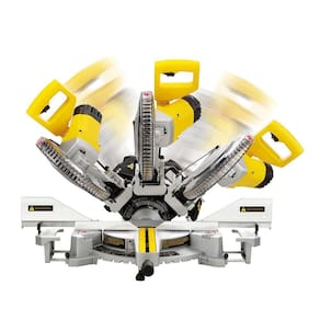 O projeto robusto da base e da cerca assegura o corte do tempo longo e preciso. Corte com bloqueio repetitivo. Cabeça chanfrada para cortes de chanfro duplo para grande versatilidade. Para aumentar a área de corte, a serra conta com braço telescópico.
