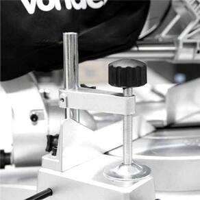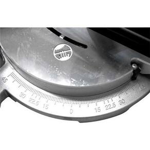 Possui base giratória para cortes em ângulo de 45 para ambos os lados, braço (cabeça de corte) com botão para regulagem de inclinação de até 45 para a esquerda, cabo com revestimento emborrachado, eixo com flange adaptadora que permite a utilização de lâminas com furo de 30 mm e protetor de lâmina. Possui ainda morsa e apoios laterais que facilitam o corte em peças de maior comprimento. Equipamento multifuncional, pois pode cortar madeira e alumínio. Indicada para cortar madeiras beneficiadas e derivados. Utilizando a lâmina apropriada (não acompanha), também pode cortar cantoneiras e esquadrias de alumínio com espessura máxima de 3 mm em operações leves e médias (Não indicado para uso continuo, apenas esporádico).