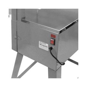 Além disso, é equipada com esticador de lâmina e volantes superior e inferior que tornam seu uso simples e seguro. A mesa espaçosa facilita o manuseio de peças maiores de carne, tornando o processo mais ágil e higiênico.