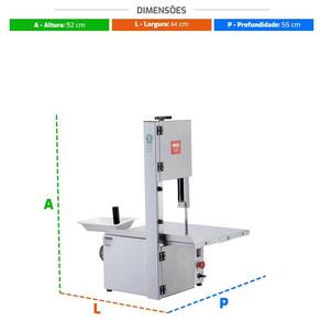 Especificações: - Mesa fixa ampla (490 560 mm): facilita o manuseio e cortes precisos - Lâmina de serra de 181 cm: cortes rápidos e uniformes - Carenagem em aço inox: resistência e higiene para uso intenso - Motor: 1/2 cv, Monofásico - Altura do corte: 300 mm - Dimensões: 640 x 550 x 920 mm