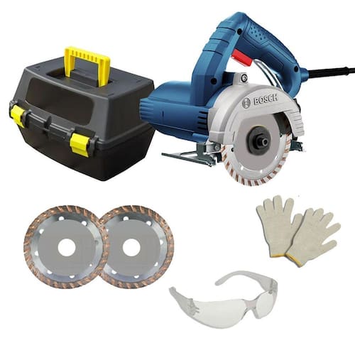 Essa serra mármore também é acompanhada por 2 discos diamantados, óculos de segurança, par de luvas e uma maleta para transporte, garantindo praticidade e proteção durante o uso e armazenamento.