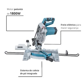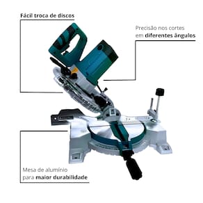 *Motor potente de 1800W *Rotação de 5.000 RPM *Disco de 255mm x 40 dentes incluído *Sistema de ajuste de ângulo (0° a 45°) *Mesa de trabalho em alumínio *Freio elétrico para maior segurança