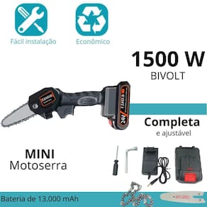 Transforme suas atividades de jardinagem e corte com a mini serra elétrica 24v portátil bivolt. Projetada para proporcionar uma experiência ergonômica e confortável, esta motosserra é perfeita para cortes e podas em qualquer lugar, especialmente em áreas de difícil acesso. Com um motor escovado potente, garante um desempenho eficiente e rápido, minimizando o cansaço nas mãos. Ideal para serviços domésticos, jardinagem e podas simples, a mini serra elétrica oferece praticidade e mobilidade sem a necessidade de arrastar fios, graças à sua bateria inclusa.