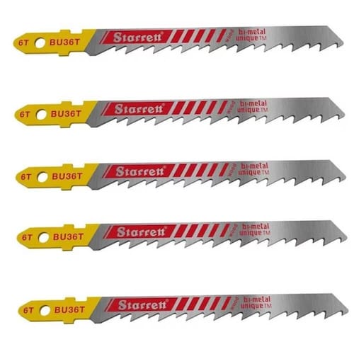 As lâminas de serra Tico-Tico com encaixe unificado™ Starrett são fabricadas com o novo AÇO BI-METAL UNIQUE™ e portanto incorporam a sua avançada performance de corte, ou seja, a nova “Starrett Bi-Metal Unique Saw Technology”.
