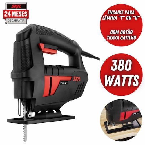 A Serra Tico Tico Skil 4380, com potência de 380 Watts, é a ferramenta de entrada da Skil, com boa ergonomia, pois possui amplo gatilho de acionamento e interruptor trava de fácil acionamento para destro e canhoto. Troque lâminas de maneira simples e fácil através de um parafuso tipo allen, com suporte e cursor de lâmina robusto. Sua placa base possibilita regulagem de inclinação de até 45graus para a esquerda e para a direita. Contém função sopro com ampla visão de corte e placa-base que não oxida.