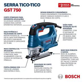 Conforto e Controle: O design ergonômico da Bosch GST 750 proporciona conforto durante o uso prolongado, enquanto a empunhadura emborrachada oferece controle preciso para cortes ainda mais refinados.