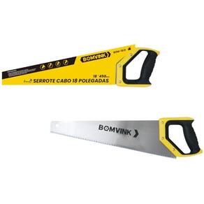 Produto: Serrote com lâmina de 18" cabo emborrachado - BOM-1531 Marca: Bomvink Descrição: O Serrote com lâmina de 18" cabo emborrachado BOM-1531 da Bomvink é uma ferramenta robusta e eficiente, ideal para trabalhos que exigem cortes rápidos e precisos. Seu punho emborrachado e almofadado proporciona conforto e controle superiores, permitindo o uso prolongado sem causar desconforto. Com um design ergonômico, ele é perfeito tanto para profissionais quanto para entusiastas que buscam praticidade e desempenho em suas tarefas. Equipado com dentes resistidos por indução e retificados com diamante, o serrote oferece durabilidade excepcional. Seu sistema de dentes de trituração com três lados é projetado para cortes suaves e eficazes, sem a necessidade de afiação ao longo de sua vida útil. Essa tecnologia inovadora garante alto desempenho e resistência, tornando o BOM-1531 uma escolha confiável para qualquer projeto Características: • Lâmina de 18" com Dentes de Trituração em Três Lados: Dentes endurecidos e retificados com diamante para cortes fáceis e rápidos; • Nunca Precisa Ser Afiado: A tecnologia de trituração endurece os dentes para durabilidade excepcional; • Cabo Emborrachado Anatômico: Projetado para minimizar fadiga e proporcionar aderência segura; • Corte Multiuso: Ideal para cortar madeira, chapas de metal, plástico e outros materiais; • Marca de Qualidade: Fabricado pela Bomvink, líder do setor com ferramentas inovadoras.Especificações: Cabo: emborrachadoLâmina: 18" 450 mm . Marca: Não Informado