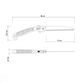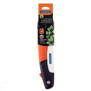 Faça o corte perfeito com o serrote profissional dobrável 8" / 210 mm Tramontina em aço com cabo plástico! Com serra ideal para corte de árvores e plantas mais grossas, tem lâmina de alta afiação e seus dentes proporcionam um corte limpo, com precisão e sem rebarbas, e que além de tudo é dobrável, facilitando na hora de guardá-la e transportá-la. Sua empunhadura é ergonômica e oferece muito mais conforto no manuseio. Praticidade e versatilidade na hora de trabalhar no seu jardim! Orientações - Lâmina em aço carbono flexível e de alta durabilidade.- Retrátil.- Formato especial da lâmina, reduz o atrito com a madeira, tornando o corte mais fácil e suave.- Área de corte da lâmina de 8" / 210 mm.- Perfil dos dentes projetado para cortar nos dois sentidos de movimento: assegura um corte limpo e sem rebarbas. Facilita a cicatrização do galho.- Elevado grau de afiação dos dentes: confere precisão de cortee dispensa retoques periódicos.- Cabo plástico com empunhadura ergonômica. Características Gerais EAN13 7891117004479 DUN14 17891117004476 NCM 8202.10.00 Peso Líquido 0,2600 kg. Peso Bruto 0,2800 kg. Metragem 0,000846 m³. Dimensões Embalagem (Compr. X Larg. X Alt.) 330x 100x 30 mm. Dimensões Produto (Compr. X Larg. X Alt.) 460x 27x 107 mm. Cor 1 EBEBEB Hexa Observações - O serrote é próprio para poda em jardins e como auxiliar nas tarefas de camping.- Conserve a ferramenta limpa, secando-a depois de lavá-la. Aplique fina camada de óleo sobre as lâminas e articulações.- Cuidado: A lâmina é afiada. O contato pode resultar lesões. Manuseie com cuidado e mantenha fora de alcançe das crianças.- Para descarte dos produtos e embalagens siga as orientações de reciclagem vigentes.