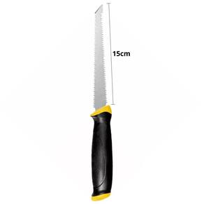 Tamanho da Lâmina: 6 polegadas 15 cm . Material da Lâmina: Aço de alta resistência. Material do Cabo: Plástico resistente com design ergonômico. Aplicação: Ideal para cortes em gesso e drywall.