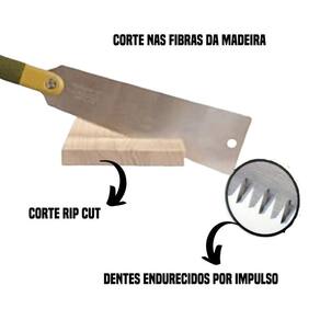 Equipado com dentes especializados para cortes transversais e longitudinais, apresenta troca de lâmina fácil com o inovador botão coin screw knob botão de parafuso de moeda . Seu cabo alongado com 325mm, destaca-se pela resistência proporcionada pelo material ABS, garantindo durabilidade, enquanto a facilidade de moldagem desse material resultou em um design ergonômico. Desse modo, o cabo oferece benefícios como conforto duradouro, reduzindo a fadiga em usos prolongados, e manuseio eficiente devido à sua leveza. Com uma abertura estrategicamente integrada no cabo, proporciona praticidade para armazenamento em ganchos ou suportes, otimizando o espaço na oficina e também permite o armazenamento seguro e evita danos acidentais.
