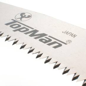 O Serrote Japonês Lamina Supertopman 425 Mm Ref1135-B42 é a ferramenta ideal para realizar podas em altura com facilidade e eficiência. Sua lâmina de 425mm possui um design especial com dente trapezoidal, proporcionando um corte rápido, limpo e preciso. Além disso, a lâmina conta com 5 pontos de contato, sendo 3 pontos de corte e 2 pontos de selamento, o que garante um corte ainda mais eficiente e evita danos à planta. A lâmina do serrote possui uma leve inclinação, o que torna a poda mais leve e oferece uma pegada firme. Além disso, a lâmina é cônica, ou seja, mais espessa nas costas e mais fina nos dentes, o que permite que o serrote entre na madeira sem engasgar, reduzindo a fricção e o da planta. Uma das vantagens do Serrote Lamina Supertopman 425 Mm é a presença de ganchos integrados à lâmina. Esses ganchos auxiliam na manobra de corte, permitindo cortar pequenos ramos, cipós e também ajudam a remover galhos presos na árvore. Além disso, na base inferior do serrote, há um gancho afiado que permite cortar a casca da árvore, evitando que galhos mais grossos lasquem a planta. A lâmina do serrote é tratada com uma camada especial de verniz, o que garante maior proteção contra a seiva. Além disso, é possível afiar a lâmina utilizando a lima trapezoidal Topman, proporcionando uma vida útil prolongada. O Serrote Lamina Supertopman 425 Mm Ref1135-B42 é indicado para poda florestal e oferece diversas vantagens e benefícios. Com ele, suas podas serão realizadas com mais rapidez e segurança. A ferramenta possui um design que garante segurança no manuseio, além de oferecer maior versatilidade e mobilidade durante as manobras de poda. O corte é realizado na puxada, e a limpeza do corte na volta, resultando em menor esforço físico e melhores resultados. Além disso, as lâminas podem ser substituídas, apesar de possuírem uma longa vida útil. Para garantir a eficiência e a durabilidade da lâmina, é importante tomar alguns cuidados. Sempre que utilizar o serrote, é recomendado escovar todos os resíduos da lâmina, dente por dente, e lubrificá-la. Após o uso, embrulhe a lâmina em papel Vcl ou jornal para evitar corrosões. O Serrote Japonês Lamina Supertopman 425 Mm Ref1135-B42 possui as seguintes características técnicas: - Comprimento da lâmina: 425mm - Comprimento total: 635mm - Peso: 590g - Marca: Topman - Origem: Japão Adquira agora mesmo o Serrote Lamina Supertopman 425 Mm Ref1135-B42 e tenha uma ferramenta de alta qualidade para realizar suas podas com eficiência, segurança e praticidade. Mantenha-a longe do alcance de crianças.