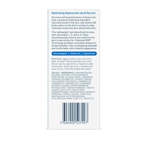 - [SORO DE ÁCIDO HIALURÔNICO] O sérum hidratante de ácido hialurônico CeraVe para rosto é formulado com nossa maior concentração de ácido hialurônico, um ingrediente que ajuda a reter a umidade natural da pele. Ajuda a pele a parecer mais hidratada e suave.