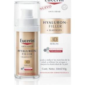 Serum Eucerin Hyaluron Filler+Elasticity 3D 30ml Eucerin Hyaluron-Filler + Elasticity 3D Serum é o soro perfeito para peles maduras. À medida que envelhecemos, nossa pele sofre diferentes alterações. Parece menos uniforme, começa a perder elasticidade e as linhas de expressão e rugas tornam-se mais profundas. Formulado especialmente para neutralizar esses sinais de envelhecimento, este soro leve e hidratante trata com eficácia as 3 dimensões do envelhecimento da pele. Seus ingredientes exclusivos podem hidratar e dar um toque visual à pele, reduzindo as rugas. Eles podem estimular a produção de colágeno, aumentando a elasticidade da pele e melhorando a firmeza. E, com um ingrediente ativo que atua na causa raiz da hiperpigmentação reduzindo a produção de melanina, este soro também pode prevenir e reduzir manchas de envelhecimento. Em essência, pode fornecer à pele madura todos os nutrientes e cuidados de que necessita. Então, se você está procurando um sérum anti-envelhecimento que atue sobre todos os sinais do envelhecimento, este é o ideal para deixar você com um olhar radiante e rejuvenescido. Ean: 4005800269776