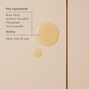 - Ingredientes principais: pétala de rosa, fosfato de ascorbil sódico (vitamina C), niacinamida (vitamina B3).