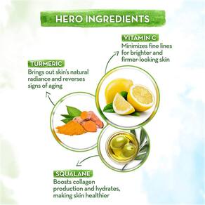 - VITAMINA C: A vitamina C é um componente forte que não apenas reduz manchas, mas também ajuda a reduzir os primeiros sinais de envelhecimento