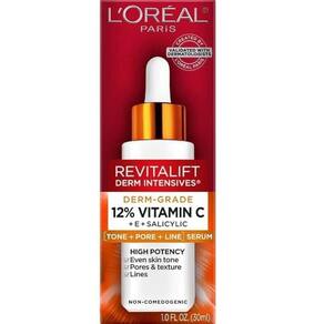 12% de vitamina C + E + salicílico. [Tom + poros + linha] soro. Criado por validado com dermatologistas. L' Oreal Paris. Nova. Dream Intensives. Grau Deram. Alta potência: tom de pele uniforme. Poros e textura. Linhas. Não comedogênico. Compromissos de cuidados com a pele da L'Oréal Paris: cada produto é extensivamente testado quanto à segurança com um mínimo de 400 aplicações, sob a orientação de dermatologistas. Todos os benefícios do produto são testados por terceiros independentes imparciais. Validado em parceria com um painel consultivo de dermatologistas Através de: Revisão completa dos protocolos e resultados de teste Triagem abrangente de ingredientes para eficácia, segurança e tolerância. Tom de pele uniforme, refine poros e linhas suaves: Combata os sinais de envelhecimento precoce com uma combinação personalizada de ingredientes recomendados por dermatologistas: 12% L-ácido ascórbico vitamina C epura: a forma mais pura de vitamina C em uma concentração altamente potente para ajudar a iluminar o tom e neutralizar os radicais livres que levam ao envelhecimento da pele. Vitamina E pura e ácido salicílico: trabalhe em sinergia com vitamina C pura para ajudar a revelar uma pele refinada e com aparência mais jovem. Tamanho real do produto. Feito para todos os tons de pele. Testado por dermatologistas, adequado para peles sensíveis: todos os tipos de pele. Absorve rapidamente. Não gorduroso. Não obstrui os poros. Sem parabenos. Sem corante. Sem óleo mineral. Testado para alergia. FSC. Embalagem FSC Mix. Usando um cartão certificado FSC para este pacote, a L'Oréal Paris apoia o manejo florestal que respeita as pessoas e a natureza. Feito na Alemanha.