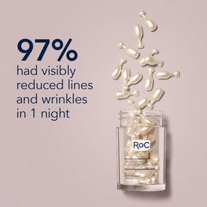 Sérum noturno antienvelhecimento RoC Retinol Correxion, tratamento de suavização de linha diária para linhas finas, manchas escuras, cicatrizes pós-acne, sem perfume, enchimento de meias, 30 cápsulas individuais, 0,35 onças