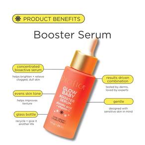 - Formulado para todos os tipos de pele, nosso sérum Booster Glow Baby pode ser utilizado sozinho ou para preparar sua pele antes de aplicar maquiagem para manter a pele macia enquanto minimiza o brilho