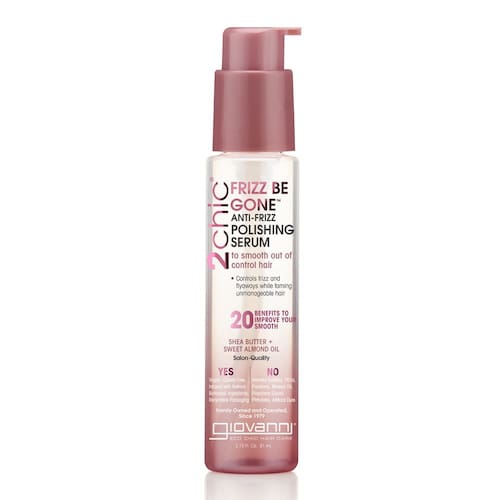 Sérum de polimento antifrizz GIOVANNI 2chic Frizz Be Gone — Fórmula natural antifrizz para alisar o cabelo com manteiga de karité e óleo de amêndoa doce, sem parabenos, sérum de óleo capilar incolor — 2,75 onças — Cuidado hidratante para o cabelo — Mantenha a hidratação com o sérum de polimento antifrizz GIOVANNI 2chic Frizz Be Gone. Veja como ele melhora a elasticidade do cabelo, suaviza as madeixas e define o estilo