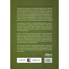 Compreendendo o trabalho e a formação dos(as) assistentes sociais de forma indissociável, a coletânea se propõe a contribuir com toda a categoria profissional: assistentes sociais, docentes, discente, supervisores de campo e acadêmicos, de forma a abordar os necessários debates deste tempo histórico no sentido de fortalecer o Projeto Ético-Político do Serviço Social no estado. De forma a reconhecer nossos esforços coletivos, nossas dificuldades, nossos avanços e nossos constantes desafios, o presente livro faz o importante registro histórico do engajamento do Serviço Social, em especial das entidades organizativas da profissão na luta antirracista, antipatriarcal e anticapitalista e na construção de agendas políticas no enfrentamento da precarização das condições de trabalho e da formação profissional expostas na conjuntura atual. Desejamos que a leitura dos artigos desperte reflexões e provocações que nos mobilizem a formular estratégias profissionais e espaços coletivos de debate e articulação que fomentem as possibilidades de construção de uma nova ordem societária livre de qualquer tipo de exploração e/ou opressão.