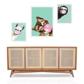 Set 3 Quadros Animais Bubble Gum Verde