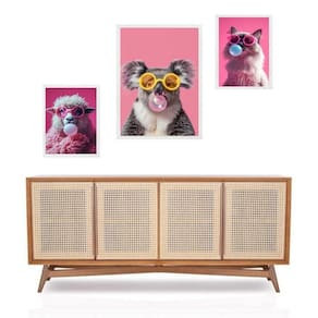 Set 3 quadros animais de óculos - chiclete - com vidro Cor: moldura branca Informações do produto tire todas as suas dúvidas no descritivo abaixo: decoração para quarto, sala, cozinha, escritório, área gourmet e muito mais. Chega de paredes vazias medidas - kit composto por 3 quadros, sendo 2 quadros com 24x33cm e 1 quadro com medida 33x45cm. Material do papel - papel fotográfico brilhante de altíssima resolução acabamento - todos os quadros são acompanhados de vidro para proteção da imagem. - moldura em madeira maciça na cor preta ou branca conforme produto escolhido e pendurador . - os quadros são embalados de forma segura com plástico bolha com camada dupla de acordo com o tamanho dos quadros. Garantia - garantia de 3 meses. Meu quadro chegou. Como posso fixá-lo Você precisa apenas de um martelo e um prego, pois os quadros já vão acompanhados de penduradores. Esta é a forma mais indicada. Como posso limpar meu quadro A limpeza é feita como um móvel comum da sua casa. Apenas um pano seco ou espanador são suficientes para tal