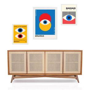 Set 3 quadros arte colorida bauhaus olhos - com vidro Cor: moldura preta Informações do produto tire todas as suas dúvidas no descritivo abaixo: decoração para quarto, sala, cozinha, escritório, área gourmet e muito mais. Chega de paredes vazias medidas - kit composto por 3 quadros, sendo 2 quadros com 24x33cm e 1 quadro com medida 33x45cm. Material do papel - papel fotográfico brilhante de altíssima resolução acabamento - todos os quadros são acompanhados de vidro para proteção da imagem. - moldura em madeira maciça na cor preta ou branca conforme produto escolhido e pendurador . - os quadros são embalados de forma segura com plástico bolha com camada dupla de acordo com o tamanho dos quadros. Garantia - garantia de 3 meses. Meu quadro chegou. Como posso fixá-lo Você precisa apenas de um martelo e um prego, pois os quadros já vão acompanhados de penduradores. Esta é a forma mais indicada. Como posso limpar meu quadro A limpeza é feita como um móvel comum da sua casa. Apenas um pano seco ou espanador são suficientes para tal