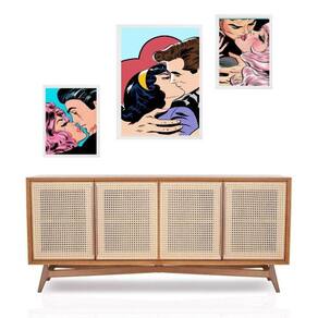 Set 3 quadros beijos pop art - com vidro Cor: moldura branca Informações do produto tire todas as suas dúvidas no descritivo abaixo: decoração para quarto, sala, cozinha, escritório, área gourmet e muito mais. Chega de paredes vazias medidas - kit composto por 3 quadros, sendo 2 quadros com 24x33cm e 1 quadro com medida 33x45cm. Material do papel - papel fotográfico brilhante de altíssima resolução acabamento - todos os quadros são acompanhados de vidro para proteção da imagem. - moldura em madeira maciça na cor preta ou branca conforme produto escolhido e pendurador . - os quadros são embalados de forma segura com plástico bolha com camada dupla de acordo com o tamanho dos quadros. - de 3 meses. Meu quadro chegou. Como posso fixá-lo Você precisa apenas de um martelo e um prego, pois os quadros já vão acompanhados de penduradores. Esta é a forma mais indicada. Como posso limpar meu quadro A limpeza é feita como um móvel comum da sua casa. Apenas um pano seco ou espanador são suficientes para tal Marca: Não Informado
