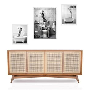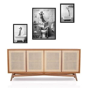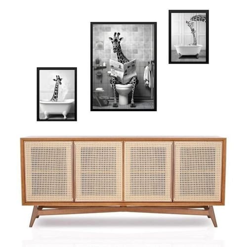 Set 3 quadros girafa no banheiro - com vidro Cor: moldura preta Informações do produto tire todas as suas dúvidas no descritivo abaixo: decoração para quarto, sala, cozinha, escritório, área gourmet e muito mais. Chega de paredes vazias medidas - kit composto por 3 quadros, sendo 2 quadros com 24x33cm e 1 quadro com medida 33x45cm. Material do papel - papel fotográfico brilhante de altíssima resolução acabamento - todos os quadros são acompanhados de vidro para proteção da imagem. - moldura em madeira maciça na cor preta ou branca conforme produto escolhido e pendurador . - os quadros são embalados de forma segura com plástico bolha com camada dupla de acordo com o tamanho dos quadros. Garantia - garantia de 3 meses. Meu quadro chegou. Como posso fixá-lo Você precisa apenas de um martelo e um prego, pois os quadros já vão acompanhados de penduradores. Esta é a forma mais indicada. Como posso limpar meu quadro A limpeza é feita como um móvel comum da sua casa. Apenas um pano seco ou espanador são suficientes para tal