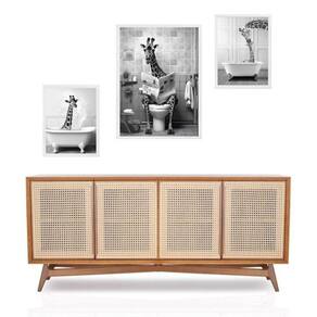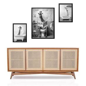 Set 3 quadros girafa no banheiro Cor: moldura preta Informações do produto tire todas as suas dúvidas no descritivo abaixo: decoração para quarto, sala, cozinha, escritório, área gourmet e muito mais. Chega de paredes vazias medidas - kit composto por 3 quadros, sendo 2 quadros com 24x33cm e 1 quadro com medida 33x45cm. Material do papel - papel fotográfico brilhante de altíssima resolução acabamento - todos os quadros são acompanhados de uma película de acetato para proteção da imagem. - os quadros são embalados de forma segura com plástico bolha com camada dupla de acordo com o tamanho dos quadros. Garantia - garantia de 3 meses. Meu quadro chegou. Como posso fixá-lo Você precisa apenas de um martelo e um prego, pois os quadros já vão acompanhados de penduradores. Esta é a forma mais indicada. Caso prefira, você pode utilizar uma fita dupla face neste caso, sugerimos de alta qualidade para evitar que descole e seu quadro caia . Como posso limpar meu quadro A limpeza é feita como um móvel comum da sua casa. Apenas um pano seco ou espanador são suficientes para tal