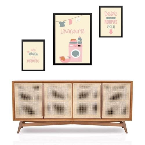 Set 3 quadros lavanderia cor de rosa - com vidro Cor: moldura branca Informações do produto tire todas as suas dúvidas no descritivo abaixo: decoração para quarto, sala, cozinha, escritório, área gourmet e muito mais. Chega de paredes vazias medidas - kit composto por 3 quadros, sendo 2 quadros com 24x33cm e 1 quadro com medida 33x45cm. Material do papel - papel fotográfico brilhante de altíssima resolução acabamento - todos os quadros são acompanhados de vidro para proteção da imagem. - moldura em madeira maciça na cor preta ou branca conforme produto escolhido e pendurador . - os quadros são embalados de forma segura com plástico bolha com camada dupla de acordo com o tamanho dos quadros. Garantia - garantia de 3 meses. Meu quadro chegou. Como posso fixá-lo Você precisa apenas de um martelo e um prego, pois os quadros já vão acompanhados de penduradores. Esta é a forma mais indicada. Como posso limpar meu quadro A limpeza é feita como um móvel comum da sua casa. Apenas um pano seco ou espanador são suficientes para tal