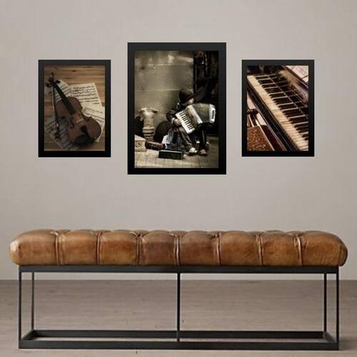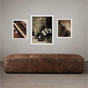 Set 3 quadros músico - instrumentos musicais - com vidro Cor: moldura branca Informações do produto tire todas as suas dúvidas no descritivo abaixo: decoração para quarto, sala, cozinha, escritório, área gourmet e muito mais. Chega de paredes vazias medidas - kit composto por 3 quadros, sendo 2 quadros com 24x33cm e 1 quadro com medida 33x45cm. Material do papel - papel fotográfico brilhante de altíssima resolução acabamento - todos os quadros são acompanhados de vidro para proteção da imagem. - moldura em madeira maciça na cor preta ou branca conforme produto escolhido e pendurador . - os quadros são embalados de forma segura com plástico bolha com camada dupla de acordo com o tamanho dos quadros. Garantia - garantia de 3 meses. Meu quadro chegou. Como posso fixá-lo Você precisa apenas de um martelo e um prego, pois os quadros já vão acompanhados de penduradores. Esta é a forma mais indicada. Como posso limpar meu quadro A limpeza é feita como um móvel comum da sua casa. Apenas um pano seco ou espanador são suficientes para tal