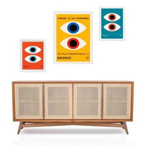 Set 3 quadros olhos coloridos bauhaus - com vidro Cor: moldura branca Informações do produto tire todas as suas dúvidas no descritivo abaixo: decoração para quarto, sala, cozinha, escritório, área gourmet e muito mais. Chega de paredes vazias medidas - kit composto por 3 quadros, sendo 2 quadros com 24x33cm e 1 quadro com medida 33x45cm. Material do papel - papel fotográfico brilhante de altíssima resolução acabamento - todos os quadros são acompanhados de vidro para proteção da imagem. - moldura em madeira maciça na cor preta ou branca conforme produto escolhido e pendurador . - os quadros são embalados de forma segura com plástico bolha com camada dupla de acordo com o tamanho dos quadros. - de 3 meses. Meu quadro chegou. Como posso fixá-lo Você precisa apenas de um martelo e um prego, pois os quadros já vão acompanhados de penduradores. Esta é a forma mais indicada. Como posso limpar meu quadro A limpeza é feita como um móvel comum da sua casa. Apenas um pano seco ou espanador são suficientes para tal Ean: 7895894074991