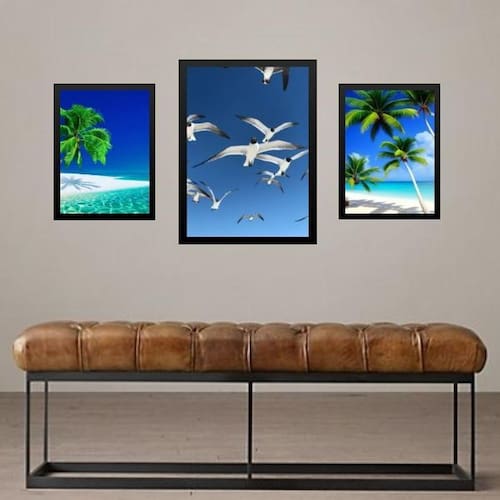 Set 3 quadros praia azul - gaivotas Cor: moldura branca Informações do produto tire todas as suas dúvidas no descritivo abaixo: decoração para quarto, sala, cozinha, escritório, área gourmet e muito mais. Chega de paredes vazias medidas - kit composto por 3 quadros, sendo 2 quadros com 24x33cm e 1 quadro com medida 33x45cm. Material do papel - papel fotográfico brilhante de altíssima resolução acabamento - todos os quadros são acompanhados de uma película de acetato para proteção da imagem. - os quadros são embalados de forma segura com plástico bolha com camada dupla de acordo com o tamanho dos quadros. Garantia - garantia de 3 meses. Meu quadro chegou. Como posso fixá-lo Você precisa apenas de um martelo e um prego, pois os quadros já vão acompanhados de penduradores. Esta é a forma mais indicada. Caso prefira, você pode utilizar uma fita dupla face neste caso, sugerimos de alta qualidade para evitar que descole e seu quadro caia . Como posso limpar meu quadro A limpeza é feita como um móvel comum da sua casa. Apenas um pano seco ou espanador são suficientes para tal